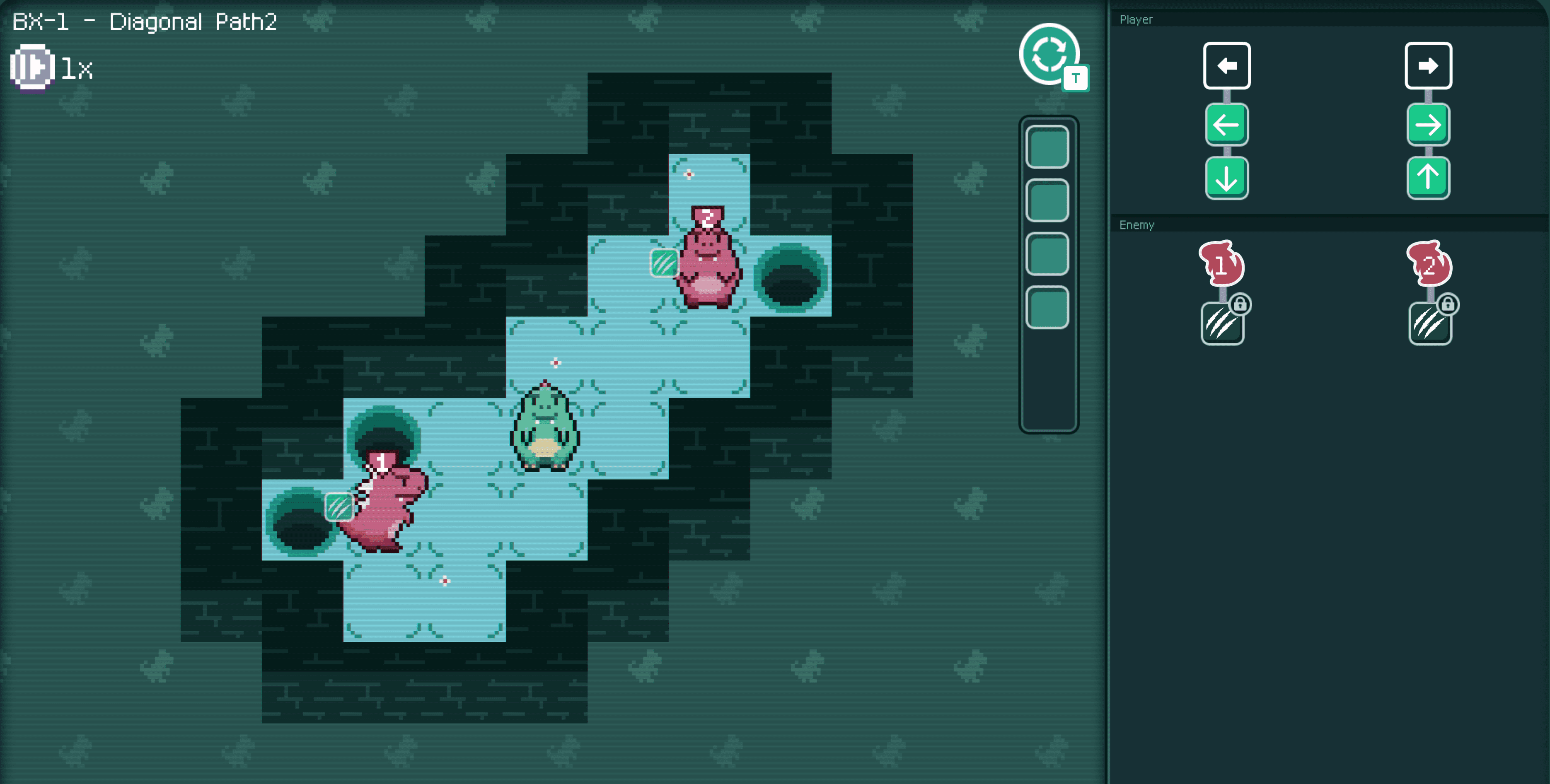 Each level gives you a set of commands you can customize and combine. Two upward moves collapsed into one input. A single button that goes up then immediately down. It sounds like a small mechanic until you realize what it opens up - movement combinations you wouldn't think to try, angles that shouldn't work, moments where you figure out a solution and feel genuinely clever for finding it.